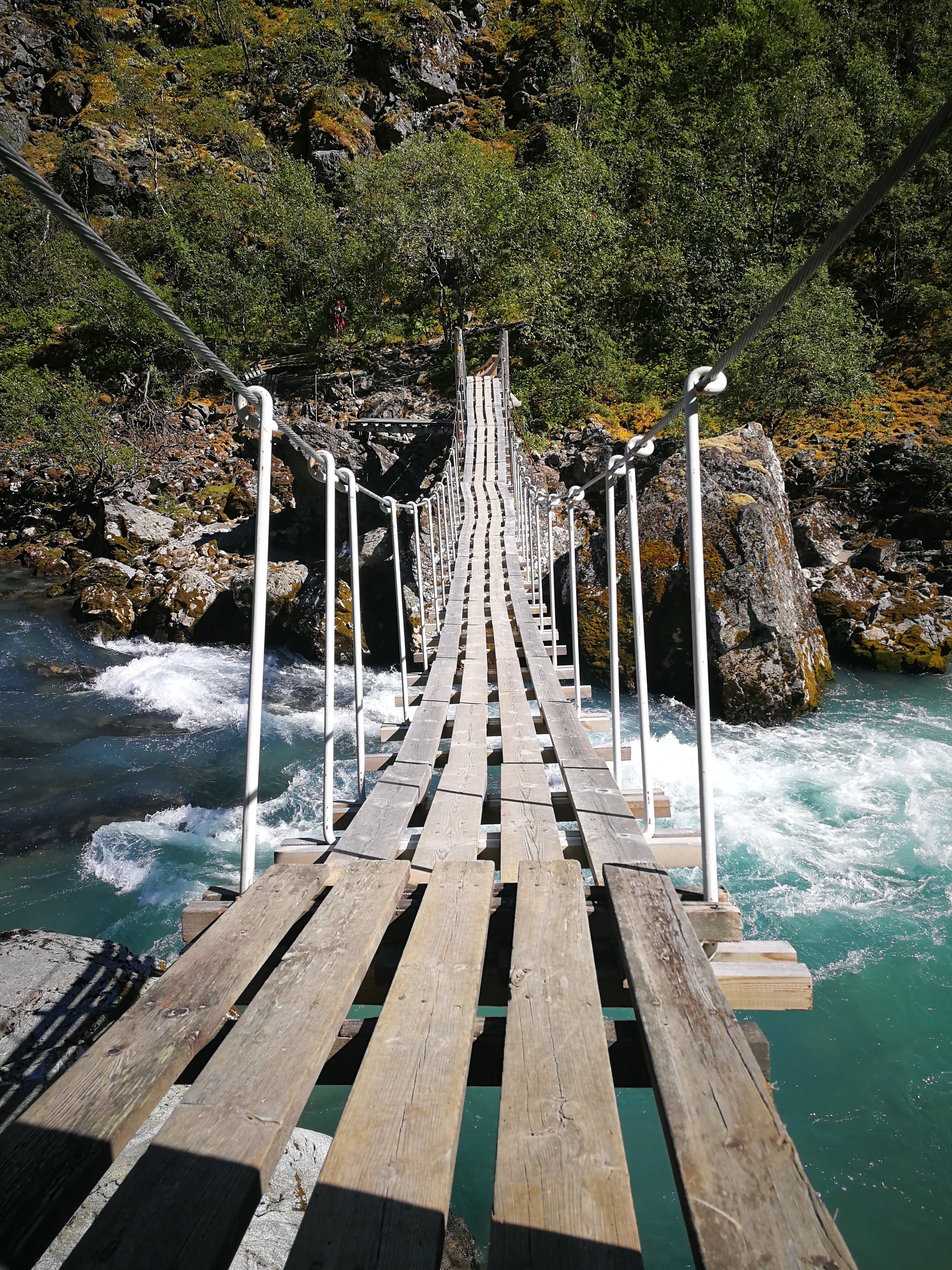 Vorbei geht es an dieser kleinen wackeligen Hängebrücke, die wir zum Glück nicht überqueren müssen.